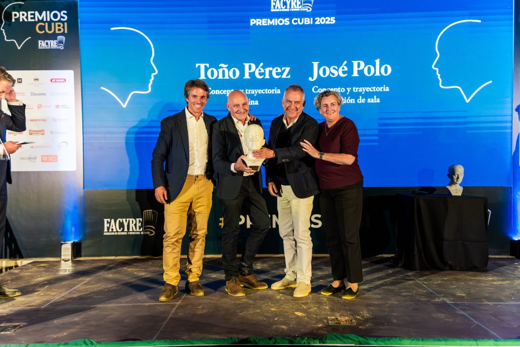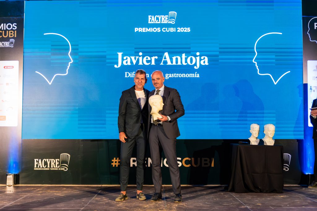 Nino Redruello y Pepa Muñoz, presidente y vicepresidenta de FACYRE, fueron los encargados de reconocer a Toño Perez, creador y chef del restaurante Atrio, con el PREMIO CUBÍ 2025 AL CONCEPTO Y TRAYECTORIA EN LA COCINA. Su compañero, José Polo, creador y jefe de sala del restaurante Atrio, recibió a su vez el PREMIO CUBÍ 2025 AL CONEPTO Y TRAYECTORIA EN GESTIÓN DE SALA.