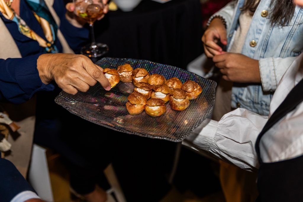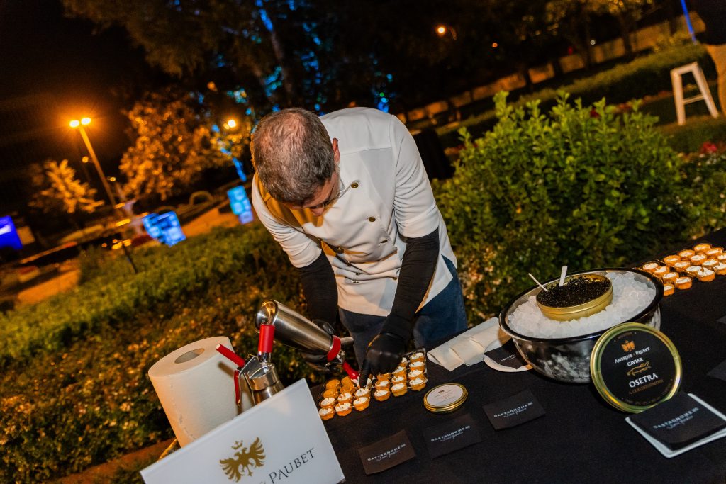 El cóctel fue a cargo de Vilaplana Catering y los jardines estuvieron rodeados de córners de producto de Ambrose & Paubet Caviar, Grupo Miguel Vergara, Ostras Daniel Sorlut y Mahou San Miguel, con la música de fondo en directo de la banda de jazz Groovin’ Rita.