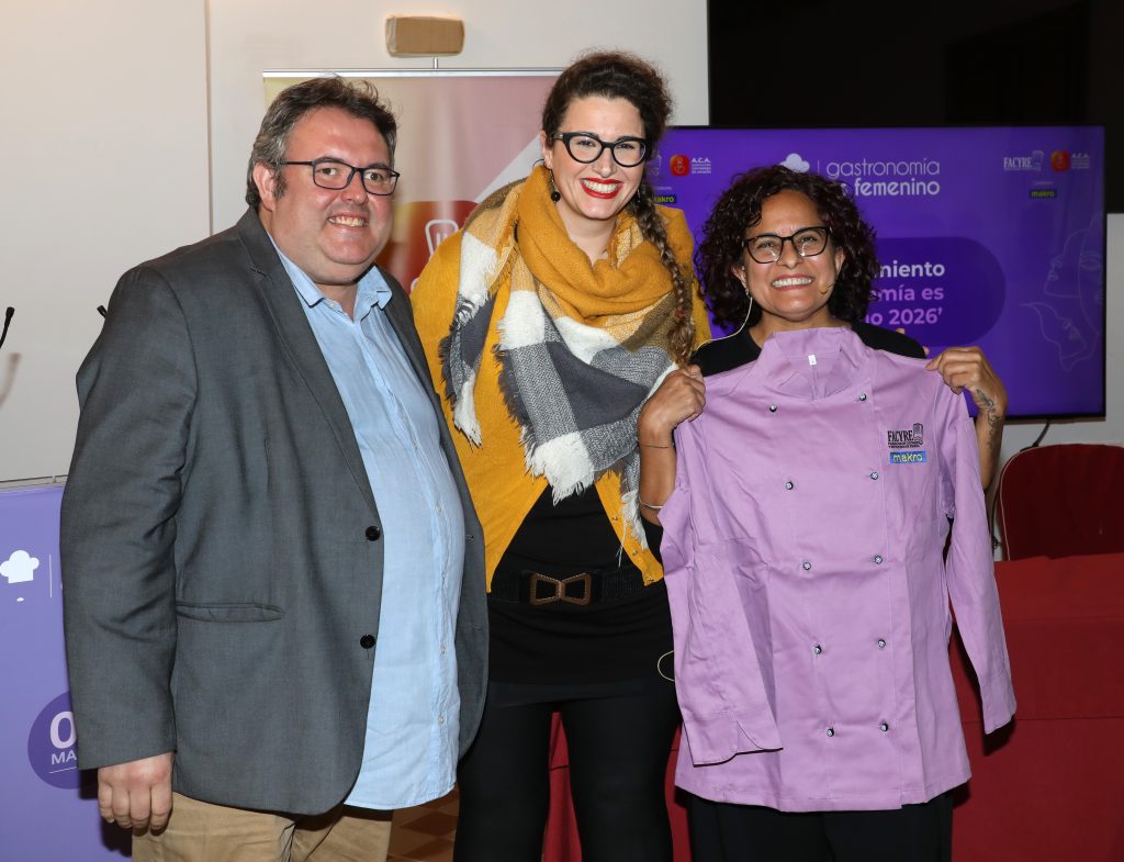 Uno de los momentos más destacados de la jornada fue el acto de entrega de las chaquetillas moradas “Gastronomía es Femenino 2026”, un reconocimiento simbólico con el que FACYRE quiso homenajear la trayectoria y el compromiso de varias profesionales que forman parte activa de la gastronomía aragonesa.