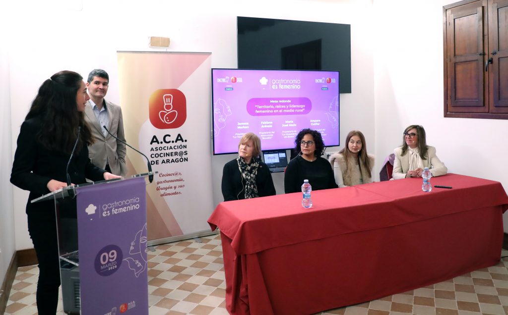 La primera mesa redonda, titulada “Producto, innovación y formación: la mujer que construye el futuro”, reunió a Mónica Alejandra Benítez, chef ejecutiva de La Torre del Visco; Esther Barroso, profesora de cocina del IES Pedro de Luna; Clara Lapuente, propietaria y cocinera de La Alquería, y María José Velilla, productora ganadera vinculada a Ternasco de Aragón IGP. Desde sus diferentes perspectivas —cocina, formación, empresa y producción— abordaron la importancia de fortalecer toda la cadena de valor gastronómica y reflexionaron sobre los retos que todavía afrontan las mujeres en el sector, especialmente en materia de visibilidad, conciliación y acceso a puestos de liderazgo.